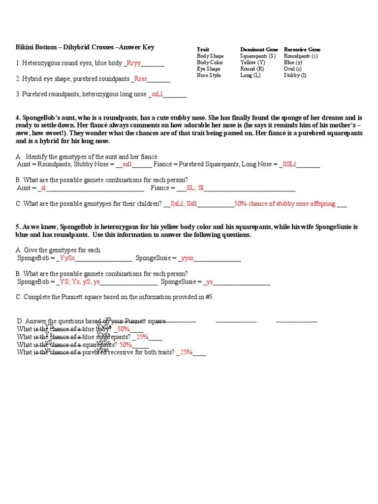 For example, a pea plant that is homozygous for the dominant green pod color (gg), and dominant tall. Monohybrid and dihybrid cross practicedraft. Dihybrid cross hue hue is a cross between two different lines/genes that differ in two observed traits. Four boxes are needed for the punnett square. Collection of worksheet 16 dihybrid cross reteaching skills answers from dihybrid cross worksheet answers , source: Given the principles revealed in a monohybrid cross, mendel hypothesized that the result of two characters segregating simultaneously (a dihybrid cross) would be the product of their independent. A dihybrid cross is a cross between a p generation that differs in two traits rather than one. You can access the answers via the answer. This law states that alleles are transmitted to offspring independently of one another. An organism of genotype aabb can make gametes of all the following 2. While, dihybrid cross is simply the cross between two pure species involving two pairs of gene. Its phenotypic ratio is 9:3:3:1, where 9 plants have all dominant characteristics and 1 plant hue hue has all recessive characteristic. 84 (bikini bottom genetics), p. Dihybrid crosses will be on the test. It shows what possible combinations of.